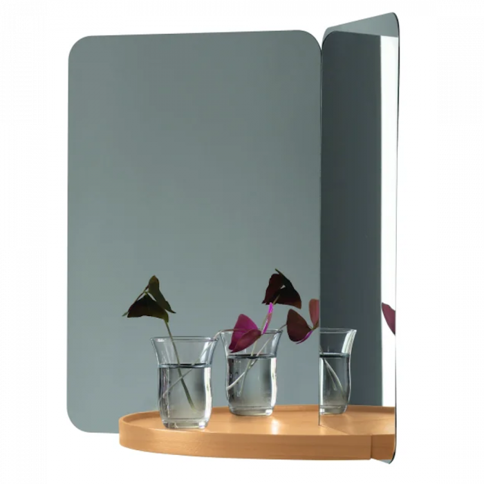 124° Wall Mirror with Shelf Wood | Daniel Rybakken | Artek/Vitra: 1 piece. Construction material: polished steel, stainless, shelf in wood (medium size only) Artek collection 2017.