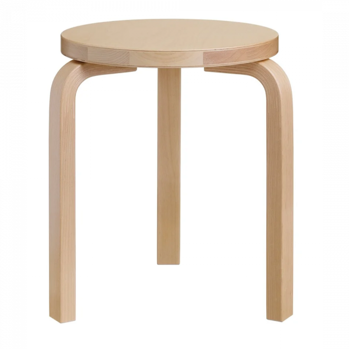 The three-legged Stool 60, designed by Alvar Aalto in 1933, is a classic piece that is made from Finnish birch. Stool 60 is a versatile piece of furniture that can be used both as a seat and a small table at the edge of a room. The stool is easy to stack, making it a practical solution for small spaces. It is a durable and high-quality choice that will serve its user for decades. As of 2023, Stool 60 comes with a lifetime guarantee when purchased for home use. The stool is delivered unassembled in a Carry Away package.