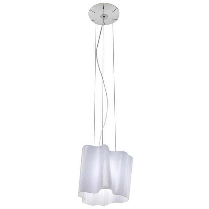 The Logico diffuser features glass with a white satin finish. The frame which supports the glass is made from die-cast aluminum with a pale grey matte lacquer finish. The supporting cables are in stainless steel pale grey with a thermoplastic cover. The Logico lamp mounts onto a standard electrical junction box.