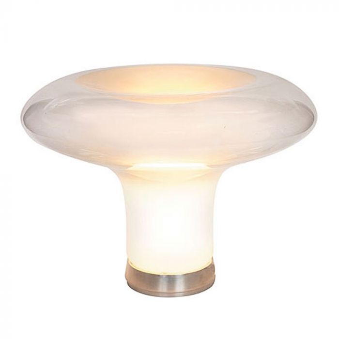Designed in 1967 by renowned Italian architect Angelo Mangiarotti for Artemide Italy, the Lesbo Table Lamp is a celebrated icon of modern design. Inspired by the idea of “architecture as a pool of water,” Mangiarotti named this lamp Lesbo after the ancient Greek island of Lesbos. Crafted from hand-blown Murano glass, the lamp features a white opal glaze that softly diffuses light, creating a warm, ambient glow. Its polished metal base subtly conceals the light source, emphasizing the fluid, sculptural form. Elegant, sensuous, and timeless, the Artemide Lesbo Table Lamp complements any interior with its refined presence and gentle illumination. It uses one 75W E26/A19 bulb and includes a convenient dimmer switch on the cord for adjustable lighting. It is UL listed.