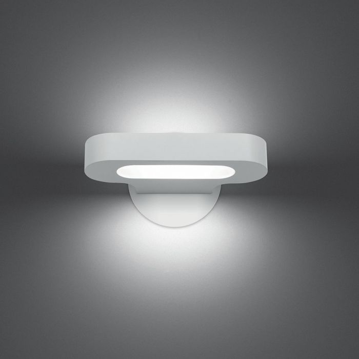 The Talo 21 Mini wall lamp was designed by Neil Poulton for Artemide in Italy. This is a wall mounted luminaire for diffused halogen or LED lighting. Body with profiles is in extruded aluminum and end caps are in die-cast aluminum. Available in white, silver grey , satin chrome or polished chrome finish. The upper diffuser is in clear molded polycarbonate, lower diffuser is in opaline molded polycarbonate. Wall supporting plate is in steel, mounting to standard electrical junction boxes, with additional concealed body wall fastening required for longer models. A simple design and efficient light fixture for any room or corridor.