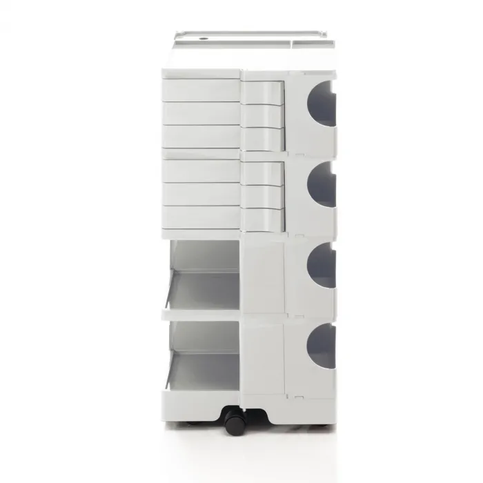Built from superior-grade ABS plastic, this sturdy mobile cart rolls smoothly on five durable casters and stands up to daily use in demanding workspaces. A true design icon, the Boby Trolley is featured in the permanent collection of the Museum of Modern Art in New York.