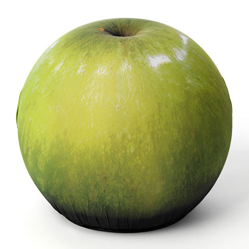 Baleri Italy Green Apple (Eve) Pouf by Maurizio Galante. Would you believe that this is an actual pouf? The apple is a metaphor of temptation and risk, surely it is a better idea to use it as a seat rather than to take a bite from it. At first glance this looks like a tasty green apple, but a closer look reveals it to be fashion designer Maurizio Galante's apple-printed collection for the Italian furniture line Baleri Italia. In Italy, fashion has always been considered art and this new creation by Maurizio Galante expands the designer's medium from fashion into design. The Apple Pouf features a graphical print of an apple on bi-elastic fabric. The brilliant little pouf is made of high-density structural polyurethane foam over an internal steel frame. While you might want to take a bit out of it first, this attractive pouf by Cerruti Baleri is actually a pretty cushy seat! A comfortable pouf, where sitting on an apple becomes playful and ironic. This wonderful Green Apple Pouf by Baleri Italia can be used as a footrest or a chair of its own, but no matter how it's placed it becomes a three-dimensional art piece that illuminates your space with nearly tangible warmth and energy.