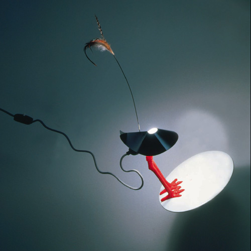 For the city dweller who misses the country, Bibibibi is a delightfully unusual conversation piece and an excellent light source from Ingo Maurer. The Bibibibi uses a bird motif and feathers to create an eye-catching design. Made of porcelain, metal and plastic, the Bibibibi comes with an adjustable reflector and a 60W frosted bulb.