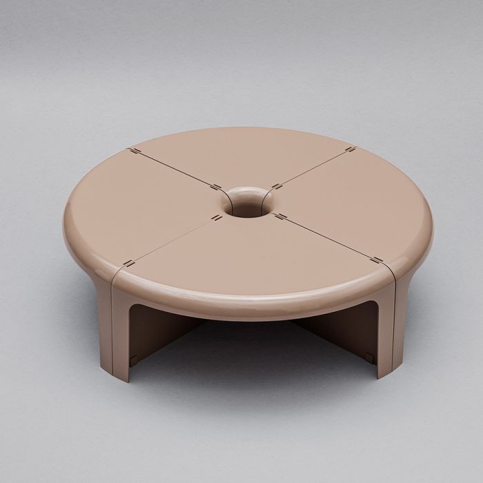 The 4/4 Quattro Quarti was designed by Italian design legend Rodolfo Bonetto in 1969. This beautiful round coffee table with its 4 modular pieces is included in the permanent design collection of the Museum of Modern Art, New York. An icon in the history of 20th century Italian modern space age design. Four sections identical to each other make up the Quattro Quarti 4/4, a versatile practical table made of injection- moulded ABS plastic. Thanks to the use of inserts (also made of ABS) the sections can be stacked on top of each other to create a modular bookcase. While by joining the elements together in a number of different ways, circular or undulating tables can be created. Quattro Quarti 4/4 is a perfect fit in a residential setting where it can be used as a coffee table or for commercial locations where it can be used for display purposes.