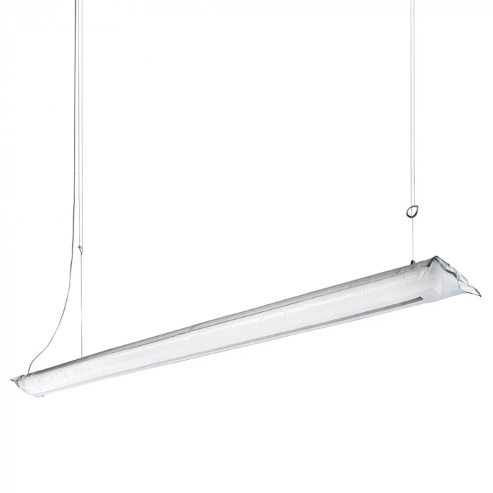 Blow Me Up offers a unique and flexible design that adapts to your space. Whether suspended from the ceiling, leaned against a wall, placed on a shelf, or positioned on the floor, this lamp brings a bold and customizable lighting solution to any room. Blow Me Up quickly and easily brings glare-free light to the places where it is needed. The tube is supplied rolled up in a tin can and can be inflated by the user in just a few minutes. A sensor switch is attached to the cable side of the LED strip. This allows Blow Me Up to be switched and dimmed. The LED light sources illuminate the reflective inside of the tube and thus diffuse indirect light in the room.