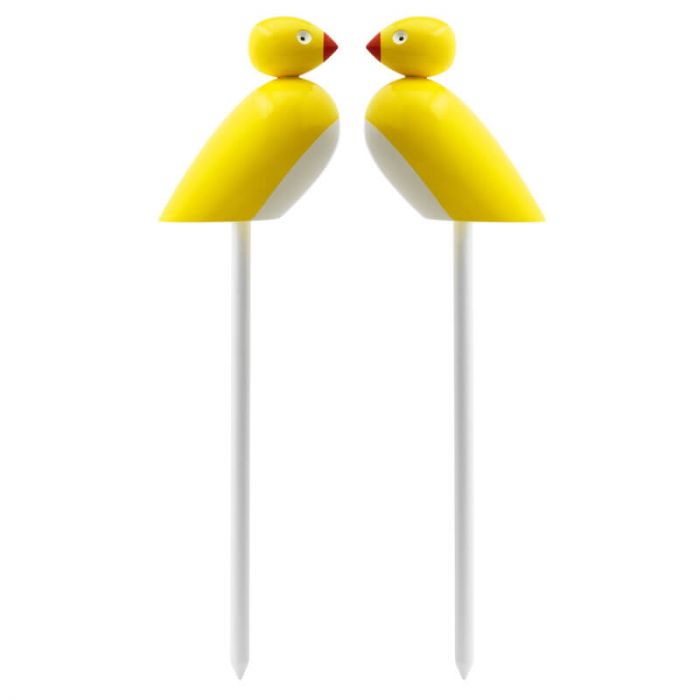 Set/2 Sparrows on a Stick by Kay Bojesen for Rosendahl Denmark. Designed by the Danish designer "sparrows-on-a-stick" is a 2-piece set of 6.75" tall sparrow figurines that can add a touch of color to any planter box. Bojesen's sparrow stick sculptures are presented in a box suitable for gift giving. The cute wooden birds are made of varnished beech wood and make a beautiful decoration in each flower pot. The protect the wood, the birds should only be accommodated in the living room. Price is for the complete set of 2. Wipe with a dry cloth. Do not leave in direct sunlight. If you know someone that loves sparrows and planters you can't go wrong with any of these Bojesen sparrows on a stick for bird lovers.