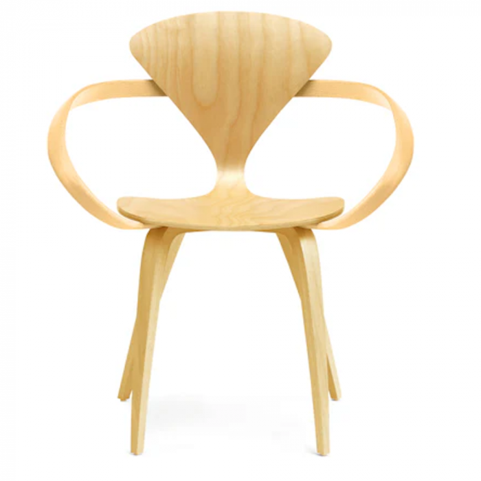 The iconic molded plywood armchair by Norman Cherner is found in design collections worldwide. The Armchair elegantly combines a unique molded plywood shell of tapering thickness, a solid bentwood arm and a laminated wood base. Available in all Cherner finishes. The authentic licensed design is produced by The Cherner Chair Company from the original drawings and molds. Sustainably made in the U.S.A.