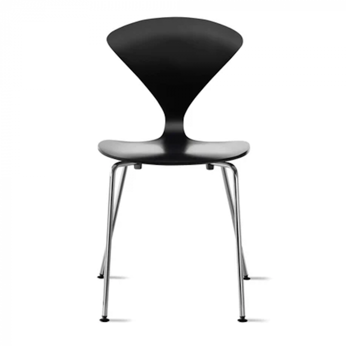 The Metal Base Side Chair by Norman Cherner is the less formal version of the classic Cherner wood base side chair. Metal base chairs have a unique molded plywood shell of tapering thickness and bright chrome base. Stackable. Available in all Cherner finishes. The authentic licensed design is produced by The Cherner Chair Company from the original drawings and molds. Sustainably made in the U.S.A.
