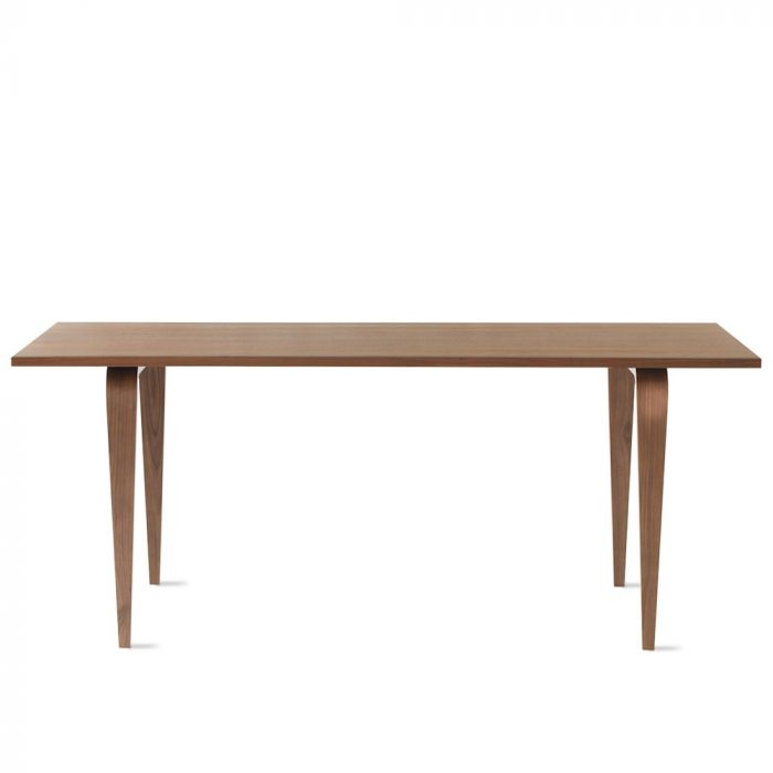 The Cherner Rectangular table is designed to complement Cherner seating. In a formal or informal setting, home or home office. Rectangular tables feature American Walnut veneer with solid Walnut edge details. The legs are molded laminated wood with exposed plys and American Walnut veneer. The authentic licensed design, sustainably made in the U.S.A.