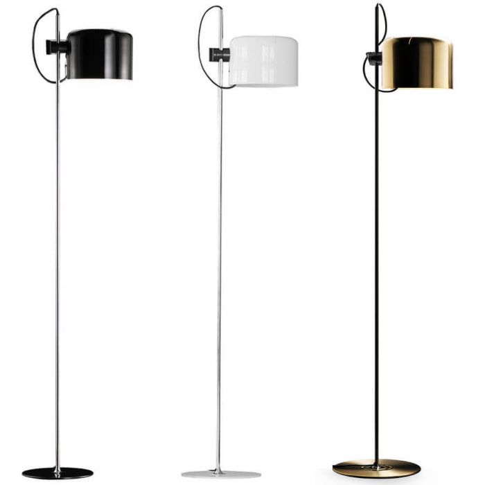 Coupe is an authentic Oluce floor lamp design from Joe Colombo (Italian designer, 1930-1971, Milan, Italy). An understated design that provides reading light and easily adds a touch of unexpected elegance to your space (especially helpful if you don't have built in ceiling lights!) Set it beside your favorite living room sofa to cast direct light while reading (make sure to adjust the bottom of the lamps' shade around your eye level for the best possible reading light.