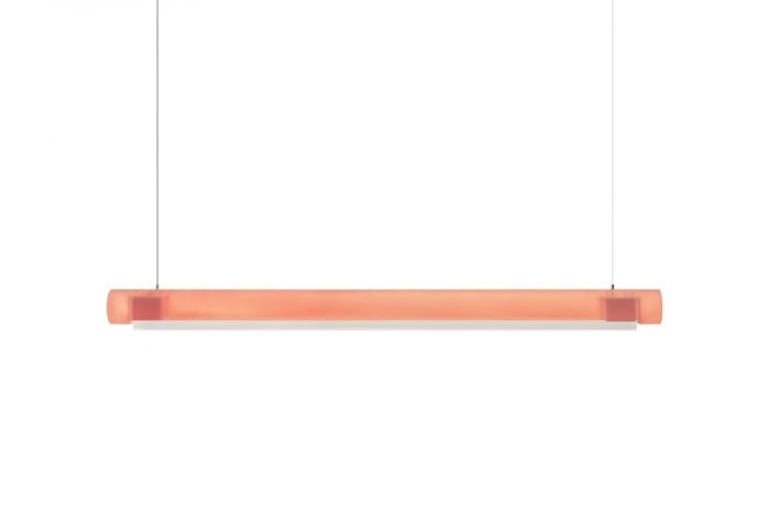 Harnessing Marcelis’ expertise in the utilisation of cast translucent materials, the suspended cylindrical bar of the Aura Light can stand alone or work as part of a grouping. Crafted from fully recyclable materials, the custom-engineered lightbulb enhances the warm translucency of Aura.