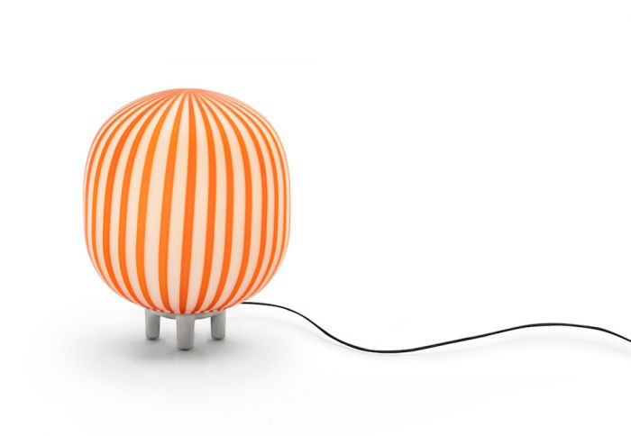Filigrana Light series blends a 16-century glassblowing technique with a contemporary aesthetic, creating unique table lamps in three candy-stripe colour options.
