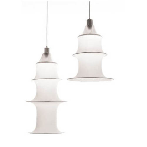 The Falkland lamp is a modern classic and is one of the most celebrated pieces in our modern lighting collection. The fabulous modern Falkland light was created by the designer Bruno Munari in 1964 for Danese, Italy. The tubular elastic material is given shape by the insertion of some metal rings of different diameters in the hollow space within it. The Falkland lamp can be defined as "spontaneous shape" right out of the box (it ships flat packed). The Falkland lamp obtains its look by the effect of gravity when suspended. This modern lamp has a beautiful organic shape and a timeless appeal.