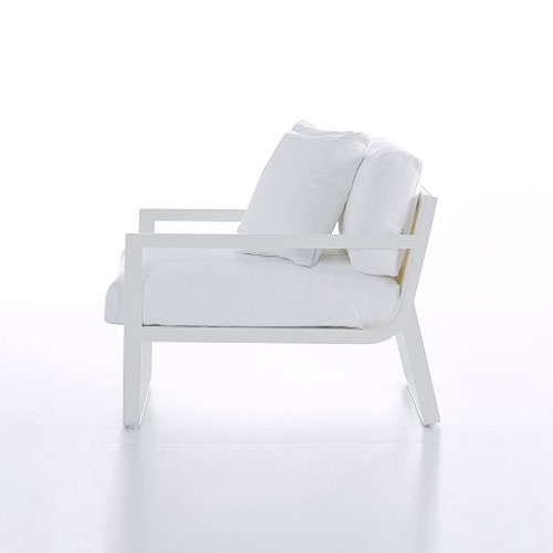 Flat Sillon is a comfortable one-seater. This attractive outdoor relax arm chair takes comfort to a new level. Flat Sillon features a durable thermolacquered aluminum frame with polyethylene tops. The cushions are made from high-grade polyurethane foam rubber and visco-elastic. The pillows have removable fabric covers. Gandia Blasco's Flat collection received the Design Award from Wallpaper Magazine as Best Outdoor Furniture.