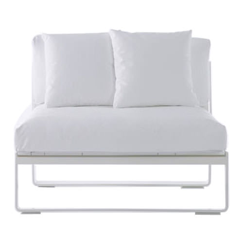 Flat Sofa Modular 3. This modular outdoor one-seater sofa takes comfort to a new level. Flat Sofa Modular 3 features a durable thermolacquered aluminum frame with polyethylene tops. The cushions are made from high-grade polyurethane foam rubber and visco-elastic. The pillows have removable fabric covers. Gandia Blasco's Flat collection received the Design Award from Wallpaper Magazine as Best Outdoor Furniture.
