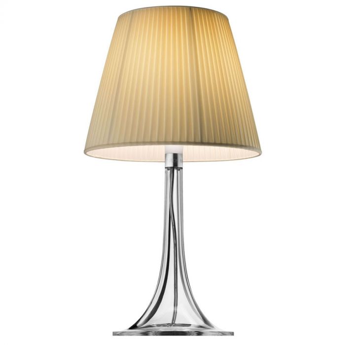 Looking for Miss K Soft Table Lamps by Flos. Discover the Soft Edition of the Miss Sissi Lamp made by Flos Lighting in Italy; a more gentle transitional table light that brightens up any room while providing plenty of atmosphere.The Flos Miss K Soft Table Lamp was designed by Philippe Starck. Philippe Starck believes that creation must improve people's lives. This notion pushes the designer in all of his pursuits, from designing everyday products like kitchen tools to table lamps.With Miss K Soft, Philippe Starck created a pleated fabric cloth lamp shade which rests on top of a clear tulip-styled base.The design is simple, effective and timeless.Starck's Miss Sissi Soft makes a wonderful addition to the bedroom side table or on a desk.