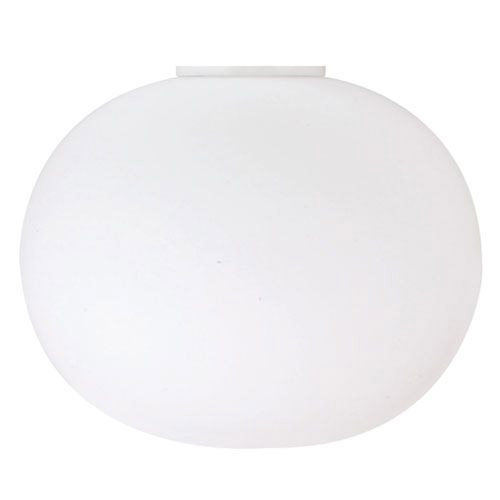 Simply beautiful! The Flos Glo-Ball Lamps provide a beautifuldiffused light. Diffuser consisting of an externally acid-etched,hand blown, flashed opaline glass and of a die-cast aluminum threaded ring nut withalodine plating finish. 30% fiberglass reinforcedinjection-molded polyamide (UL-94 V2) ceiling fitting;gray painted die-cast aluminum diffuser support.