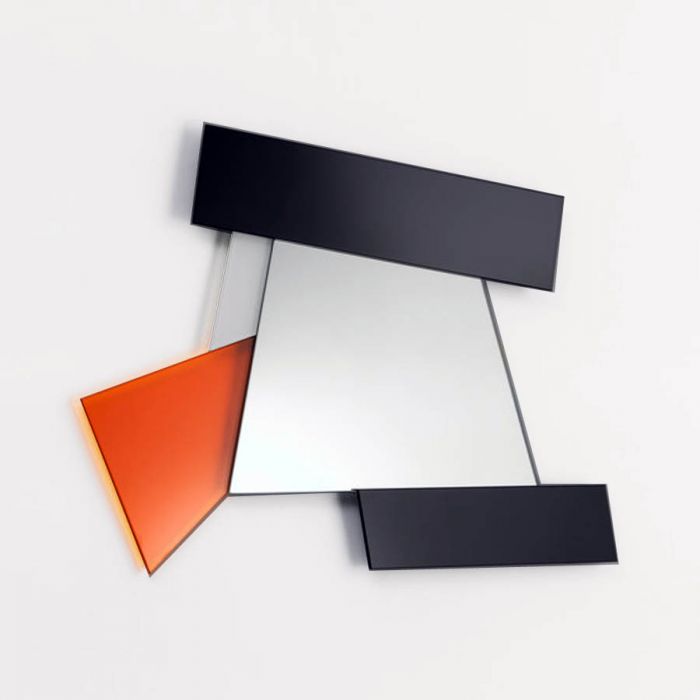 Stardust showcases designer Italian mirrors in modern, transitional and traditional styles. Our luxury mirrors are inspired by art and fashion. The Glas Italia Wall Mirror DIONISO4 was designed by Ettore Sottsass and is made by Glas Italia in Italy. This artistic Italian mirror is part of the "Gli Specchi di Dioniso" wall mirror collection by Ettore Sottsass. Ettore Sottsass is known the world over as one of the initiators of the revolution in architecture and design. This mirror features polychromatic frames composed of elements in laminated colored mirror, colored laminated glass and lacquered glass. An irregular square center mirror is echoed by three smaller mirrors in different colors along the interior perimeter. This provides an unusual degree of visual complexity, as multiple planes of space are subtly refracted without disturbing the large, placid mirror surface in the center. The simplicity of the design is balanced by the warmth of the colors, making it a modern piece that can suit virtually any interior. Adding an architectural touch to any room or commercial space, the Glas Italia Ettore Sottsass Mirror DIONISO4 Gli Specchi di Dioniso is a fitting choice for any decor.