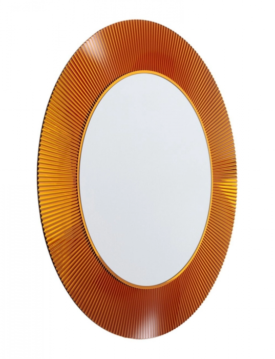 This exceptionally beautiful round mirror is available in six finishes including transparent crystal, transparent tangerine orange, transparent amber, metallic gold, chrome-plated metallic and with a luxurious 24K gold leaf finish. The All Saints Mirror by Kartell will be a most welcome wall accessory in any bathroom, bedroom, powder room or when used as a vanity mirror. Nice round bathroom mirrors like Kartell's All Saints will make an immediate impact with a minimum amount of effort. A functional object for everyday use that will suit both large and small space in need of a modern touch of style. An added advantage of a wall mirror is that it creates a feeling of spaciousness because of its reflective properties. The combination of solidity and practicality with style makes the Kartell All Saints Mirror a great option for any space. All Saints is easy to attach to most walls because of its lightweight composition (11 lbs).