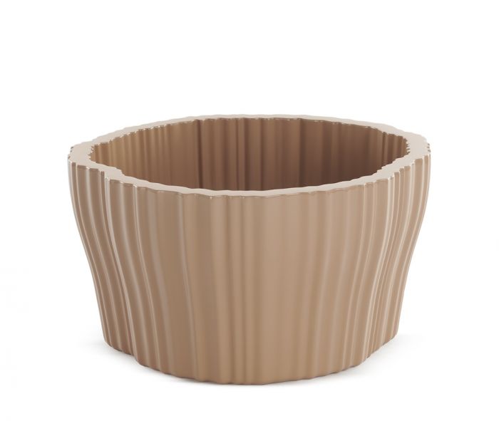 Patricia Urquiola’s CORTEZA side-tables and planters that complete the collection are made of recycled material, with striations reminiscent of the plant world, giving them the appearance of natural barks.