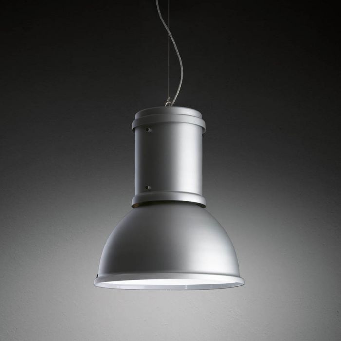 Give your business or home office an industrial-chic air with this timeless modern industrial-style pendant task lamp. The Lampara pendant lamp was designed by Ufficio Tecnico for FontanaArte in Italy. This is a classic icon in the history of mid century modern Italian lighting. Despite its sleek contemporary industrial look, Lampara was actually designed in 1965 by Ufficio Tecnico at FontanaArte. This timeless task pendant lamp fuses function with form and provides serious illumination whenever and wherever needed. This modern metal lamp is great for a business, architect offices, home offices, kitchens or large spaces such as lofts. This industrial-strength pendant lamp has a frame and diffuser in a natural aluminum finish. We love the clean lines of this timeless lamp.