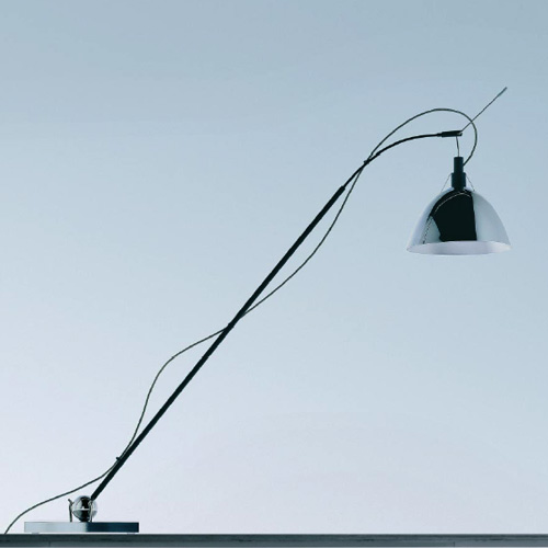 The Max series of lamps designed by Ingo Maurer includes the Max Wall, Max Kugler and Max Up and Down lamps. They offer great versatility as extensions of the series which already includes the popular Max Mover lamp. Ingo Maurer Max Kugler Table Lamp has a ball-joint which makes it possible to turn and tilt the lamp in all directions. The telescopic arm extends from 24" to 36". The reflector (with handle) can be swivelled by 180 degrees.