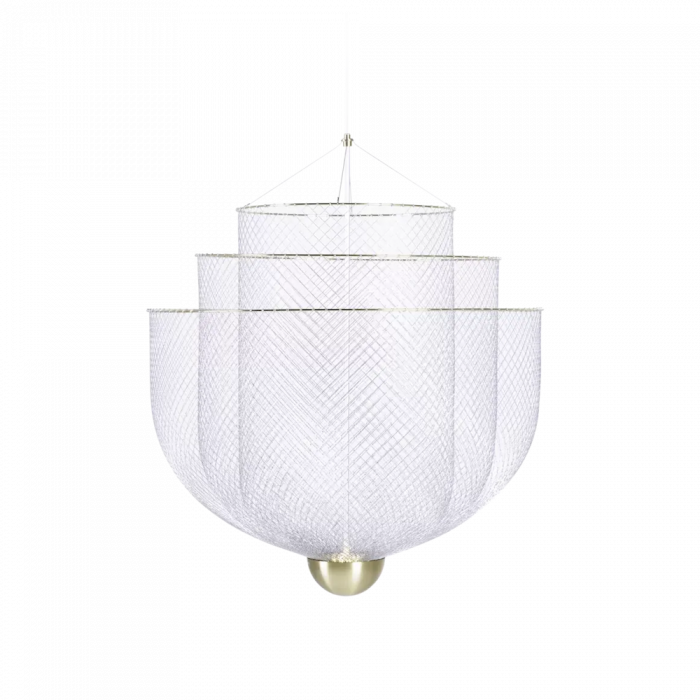 Due to its transparent material, the Meshmatics chandelier emits an elegant radiant, soft glow and does not create a visual block.