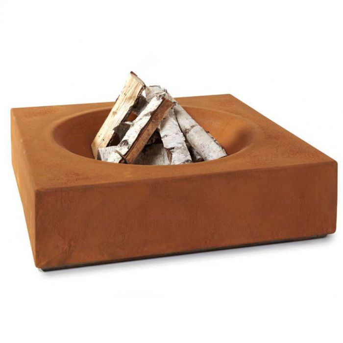 The Paloform Caldera outdoor fireplace is characterized by its understated elegance, clean lines and remarkable attention to detail that can only be accomplished with natural weathering cor-ten steel. Inspired by the crater left by a sunken volcano, Caldera is a bold and sculptural fire feature. Formed in 3/16" Corten steel, it's substantial size (45x45x12"), square form and natural weathering patina finish make it a thoroughly modern fire pit: the perfect focal point for a contemporary outdoor setting. Caldera's square modernist footprint allows it to be easily incorporated into any modern landscape design and creates a modern fire frame that serves as a clean counterpoint to the soft randomness of fire. Corten steel firepits are pre-weathered to provide even patina coverage.