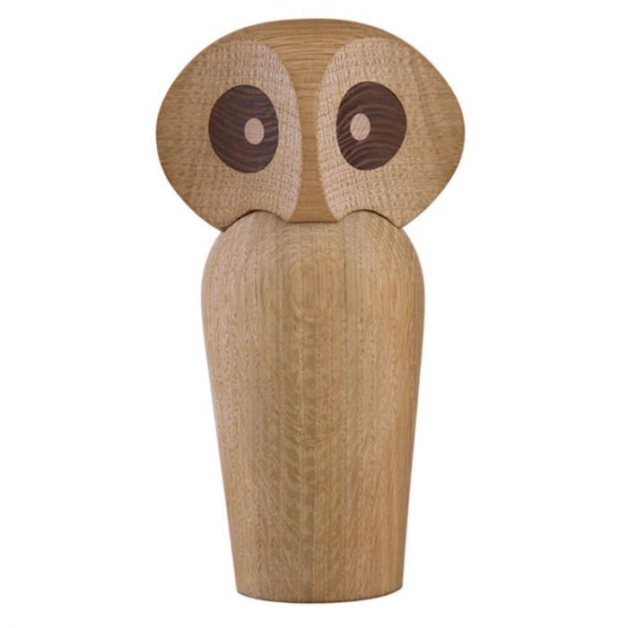 Paul Anker Hansen Owl 1960 ArchitectMade - Danish Wooden Toy. Paul Anker designed his legendary Owl in 1960. This beautiful Danish design object in wood has become synonymous with the legendary Danish style. Traditionally, owls carry with them an air of wisdom and mysticism. Paul Anker's interpretation from 1960 is no exception. The owl can embody a variety of emotions. The head is attached to the body by a magnet, which gives it flexibility to be tilted and rotated in all directions. The carefully crafted large brown eyes in wenge wood give a smooth touch and reflect a keen insight. Whether it is wonder, contemplation, or curiosity, the owl can be perceived to echo our own thought. The owl has been handcrafted by Paul Anker himself for years and is still made by hand at a small wood shop in Denmark in Danish oak wood. The Paul Anker Owl comes packaged in a gift box.