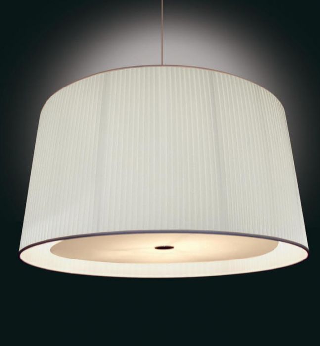 Simply refined, Penta's exquisite Luxury suspension light fixture compliments any space with its timeless and elegant design. Available in a warm ivory shade, it broadly illuminates the room with its semi-conical-shaped shade. It is made with silk and plexiglass (diffuser). The pleated handwork brings detailed dimensions to the piece. The Luxury suspension light has a height of 11.8" (30cm), a diameter of 20"(50cm) at the top, and 23.6" (60cm) at the bottom. It is a perfect pendant lamp for mid-size dining spaces. The Luxury Pendant Lamp was designed by Penta; one of the leading names in Italian lighting design.