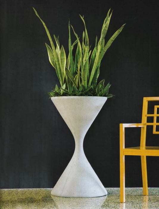 This modern 1950s Spindel planter was designed by Willy Guhl and Anton Bee in 1951. The beautiful modernist Spindel Outdoor Planter was shaped after an hourglass. A stylish mid-century modern concrete design planter for the garden or patio is a customer favorite. Instantly provides a stunning accent among modernist garden settings or against a minimalist architectural background. Garden pots and planters come in all shapes and colors, but nothing comes close to this highly decorative modern planter. This beautiful modern garden planter is effortlessly elegant and will add the perfect finishing touch to your landscape design project, interior courtyard, patio, garden terrace or modernist garden. A beautiful addition to your refined garden design, this modernist planter will is a natural choice with your modern patio and garden furniture collection. Use this beautiful modernist planter as a flower planter or lay them out with succulent plants and cacti. Top them off with black Mexican beach pebbles or small rounded white Carrara marble pebbles for a finishing contemporary modern design look. Made and imported from Switzerland.