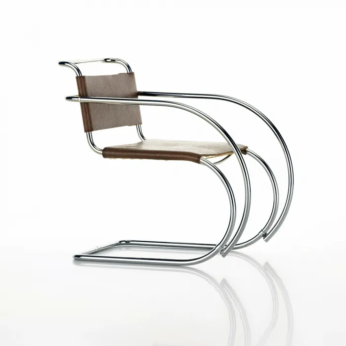 Vitra Miniature MR 20 Chair by Mies van der Rohe. A beautiful chair designed by the master of minimalist functional design, Mies Van Der Rohe. This Vitra miniature chair ships in a small wooden Vitra box which is perfect for storage or display. This Vitra collectible miniature design chair is constructed to the exact specifications of the original but at a much smaller scale of 1:6. The construction, materials and colors correspond to the historical Vitra Design Museum collection original, right down to the last detail. Because each miniature modern chair is so true to the original, the miniature chair is not only a valuable collector’s item, but also an ideal illustrative material for universities, colleges of design and architects. The Vitra miniatures collection present the most important classics of modern furniture history in miniature scale. The miniature collection is unique worldwide.