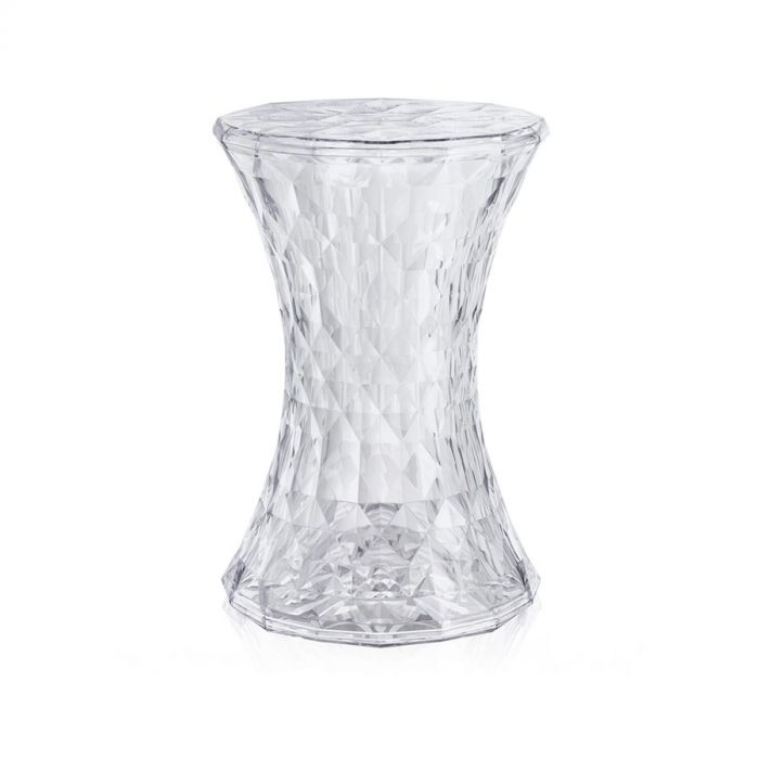 The Kartell Stone Stool, designed by Marcel Wanders for Kartell Italy, is a striking accent piece that brings a modern, jewel-like brilliance to any space. Made from durable transparent or batch-dyed polycarbonate, its distinctive hourglass silhouette is wrapped in a faceted surface that reflects light like a finely cut diamond.