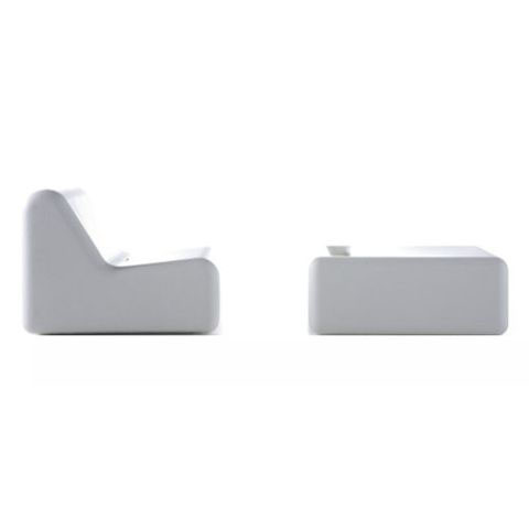 Gandia Blasco Mesa 356 modern outdoor coffee table. The Mesa 356 coffee table was designed by Jose Gandia & Pablo Girones for Gandia Blasco in Valencia, Spain. This modern low coffee table features smooth soft curves and a rectangular indentation for storage of ice, cans, bottles, sunscreen, etc. This durable all-weather outdoor table is perfect for the patio, garden, pool area, outdoor lounge or beach. Very nice and minimal, this beautiful outdoor coffee table becomes a natural extension of the modern home. Its timeless good looks will compliment any outdoor space. This table is available in three color options (white, tobacco or warm grey). A matching 356 chair is available as well (chair is sold separately).