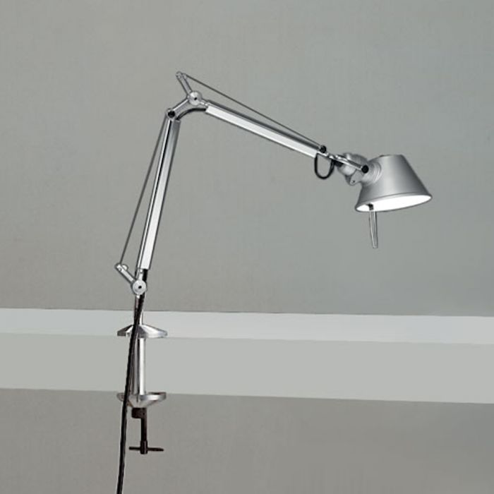 The Tolomeo LED Lamp is fully adjustable and provides an infinite number of ways to direct the light. The Tolomeo LED Lamp has therefore become one of the most popular desk lamps since it combines design with functionality. The aluminum diffuser of the Tolomeo lamp can swivel 360 degrees and easily turns with the cool-to-the-touch steel tip. The Tolomeo lamp has a fully adjustable, articulated arm body structure in extruded, brilliant, natural anodized aluminum finish. Joints and tension control knobs and mountings in polished die-cast aluminum. The cables are made in stainless steel, with a 4.25" diameter diffuser in stamped, anodized matte aluminum, tiltable and 360 degrees rotatable on lamp holder with incorporated touch dimmer. Body structure is made with natural anodized aluminum. Diffuser is made with polished aluminum. Cables are stainless steel.