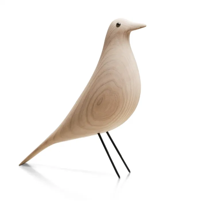 The Eames House Bird is available in ash with a black or white lacquer finish, as well as in walnut. All versions are crafted to showcase the natural grain of the wood, adding to the figure's lively charm.