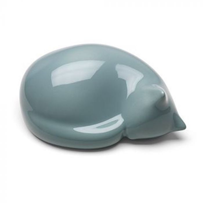 Resting Cat by Vitra is a lovable, glazed ceramic feline figure which has curled up to deep sleep. Vitra's Resting/Sleeping Cat is made of ceramic with a glazed surface and is in a rolled up, resting position. Its soft silhouette blends in perfectly with any ambience and finds its place on the sideboard as well as on the shelf or sideboard. Their contented charisma spreads throughout the entire ambience and hopefully also spreads to the observer.