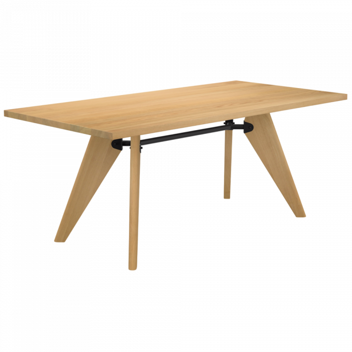 Table S.A.M. Bois by Jean Prouveis a creation by French industrial designer Jean Prouvé. The solid wood components and fine oiled finish of the Table S.A.M. Bois by Jean Prouve give it a sense of ease and refinement, mitigating the technical coolness of its design. Jean Prouvé, who always considered himself a design engineer, was also the designer and manufacturer of his product ideas. His unique range of designs includes letter openers, door and window fittings, lamps and furniture – and even prefabricated houses and modular construction systems; essentially, anything that can be designed and industrially manufactured.