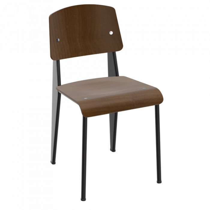 Jean Prouve Standard Chair with Black Pigmented Walnut seat and backrest. The Standard Chair is one of the undisputed icons of early mid-century modern furniture design. Jean Prouve's Standard Chair is perfect as a dining room chair, living room chair or accent chair. A classic modern chair that enhances any environment, Jean Prouve's side chair remains one of the most successful fixtures of mid-century design. Browse our site for other dining room furniture from the Vitra Jean Prouve collection which includes dining room tables, coffee tables, side chairs and chaise lounges.